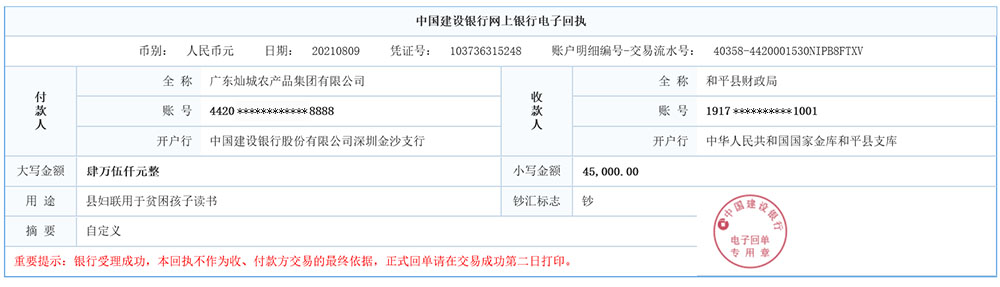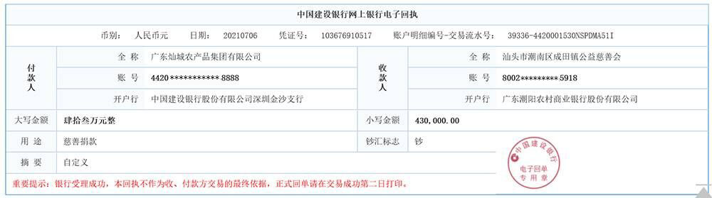 燦城集團愛(ài)心捐贈流水截圖部分展示