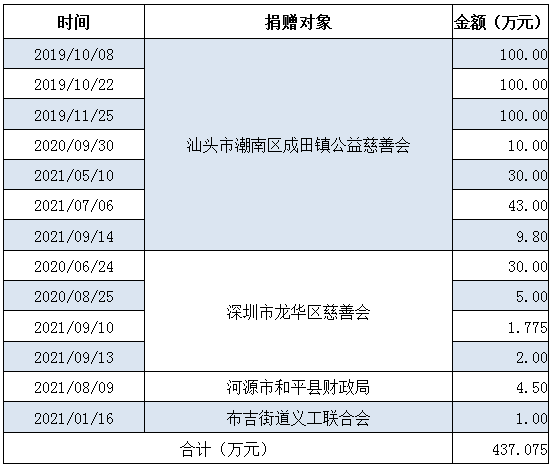 自2019年以來(lái),廣東燦城集團在董事長(cháng)李陽(yáng)城的帶領(lǐng)下積極踐行企業(yè)社會(huì )責任,參與社會(huì )各類(lèi)公益捐贈總額超過(guò)437萬(wàn)元。其中向汕頭市潮南區成田鎮公益慈善會(huì )捐贈資金392.80萬(wàn)元;向深圳市龍華區慈善會(huì )捐贈38.775萬(wàn)元;向河源市和平縣財政局捐贈4.5萬(wàn)元,幫助貧困學(xué)子成長(cháng)成才;向布吉街道義工聯(lián)合會(huì )捐贈1萬(wàn)元等等。
